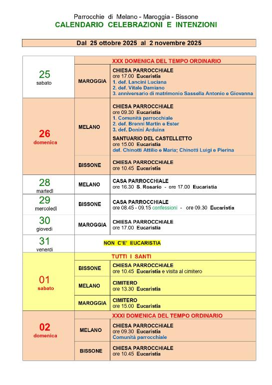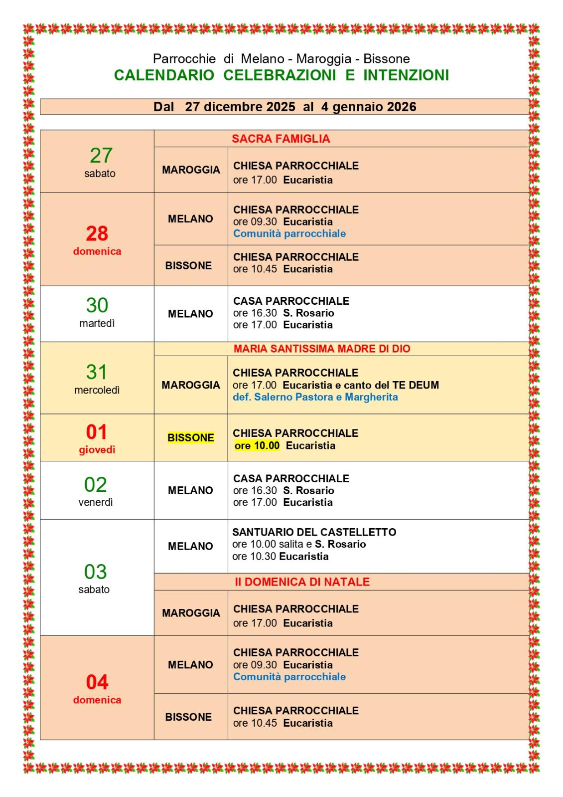 SETTEMBRE: Natività della Beata Vergine Maria. La prima domenica del mese di settembre viene organizzata la Sagra, con S. Messe mattutine durante la settimana della festa. Viene pubblicato un volantino con tutti i dettagli.