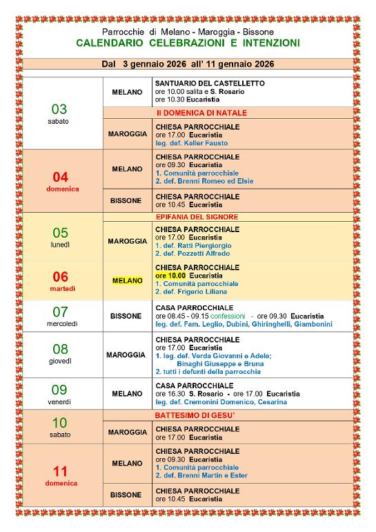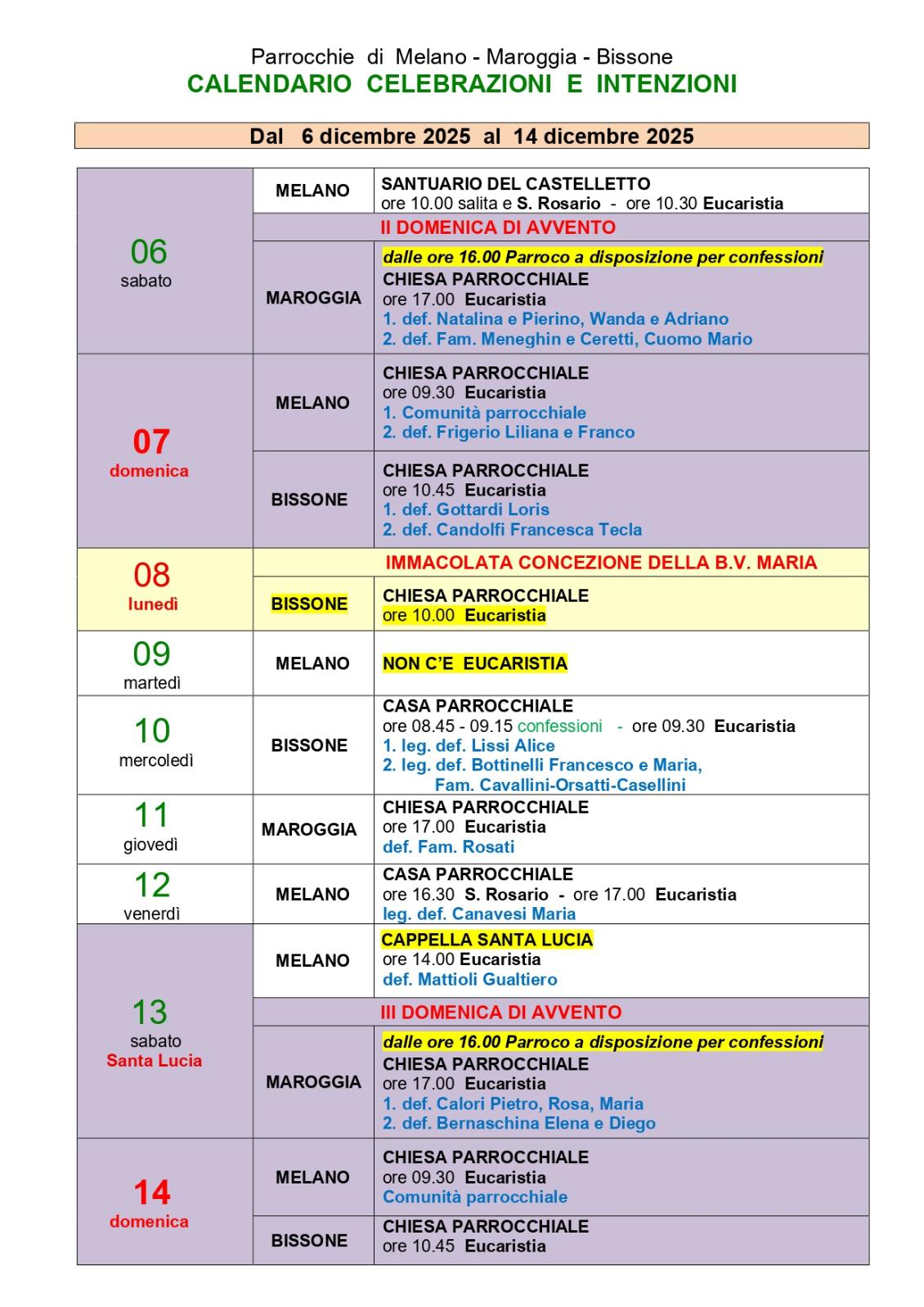 SETTEMBRE: Natività della Beata Vergine Maria. La prima domenica del mese di settembre viene organizzata la Sagra, con S. Messe mattutine durante la settimana della festa. Viene pubblicato un volantino con tutti i dettagli.