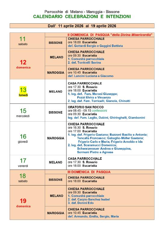 ORARI SANTE MESSE: